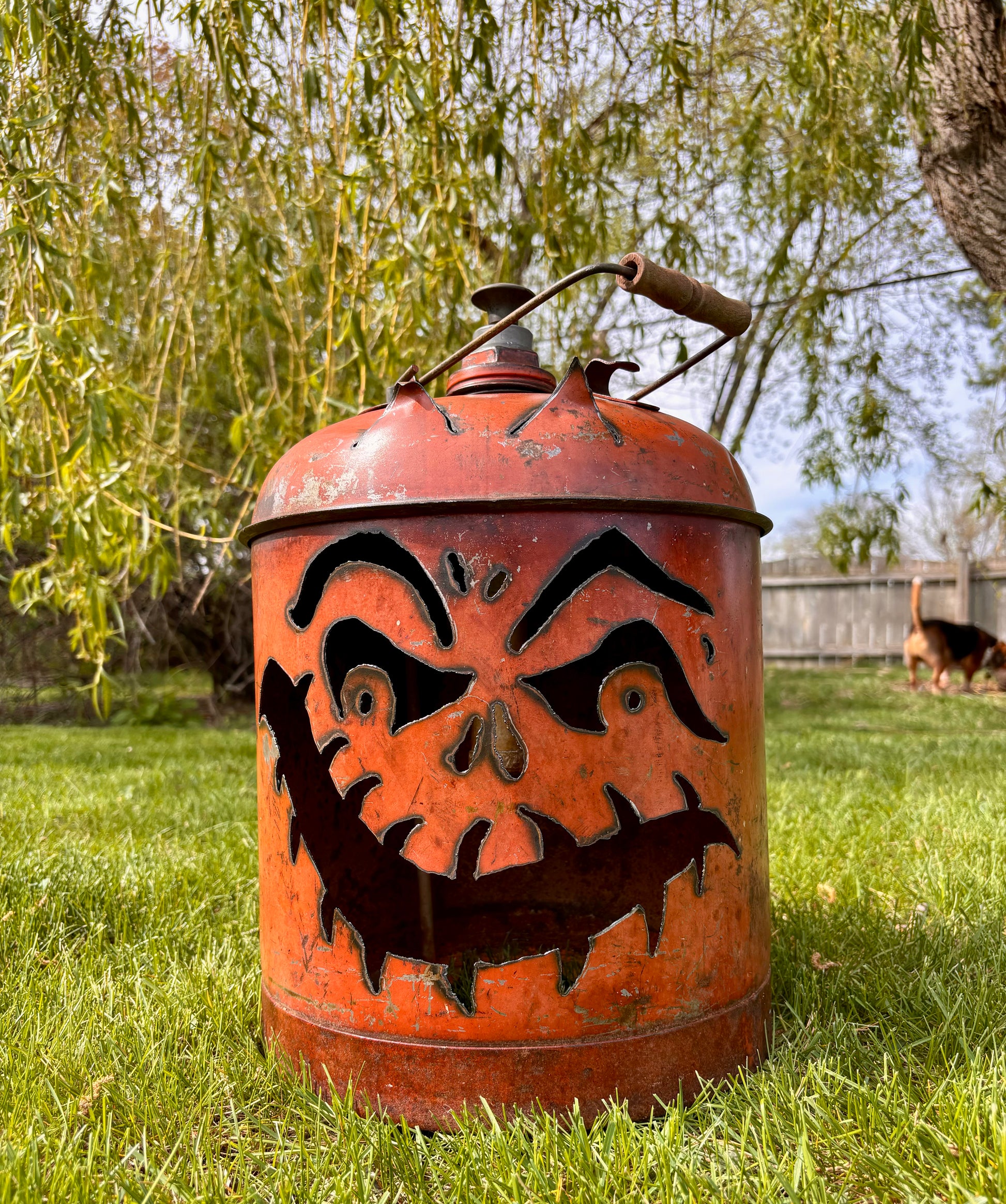 How fun would it be to have this extra large jack-o-lantern lighting up your yard? This vintage orange gas can has been upcycled into an original piece of art you won’t find anywhere else.