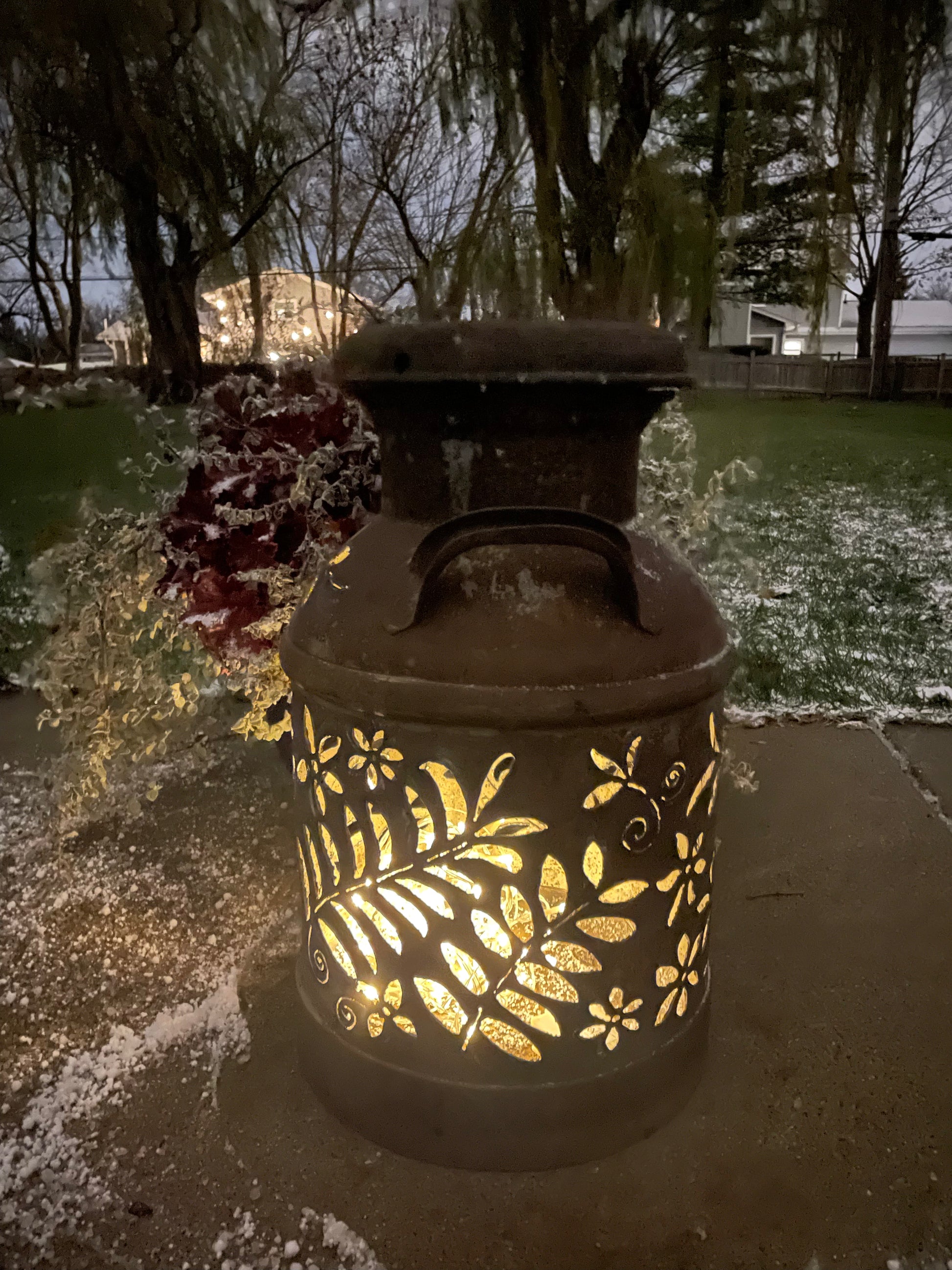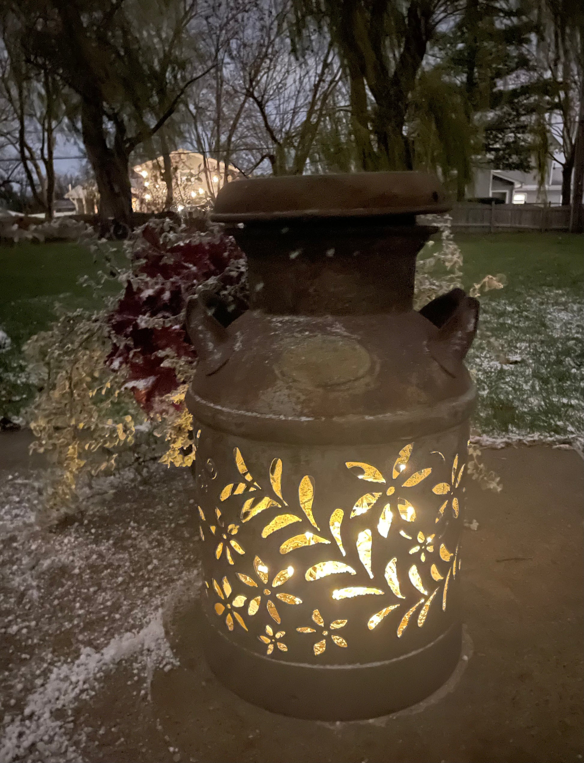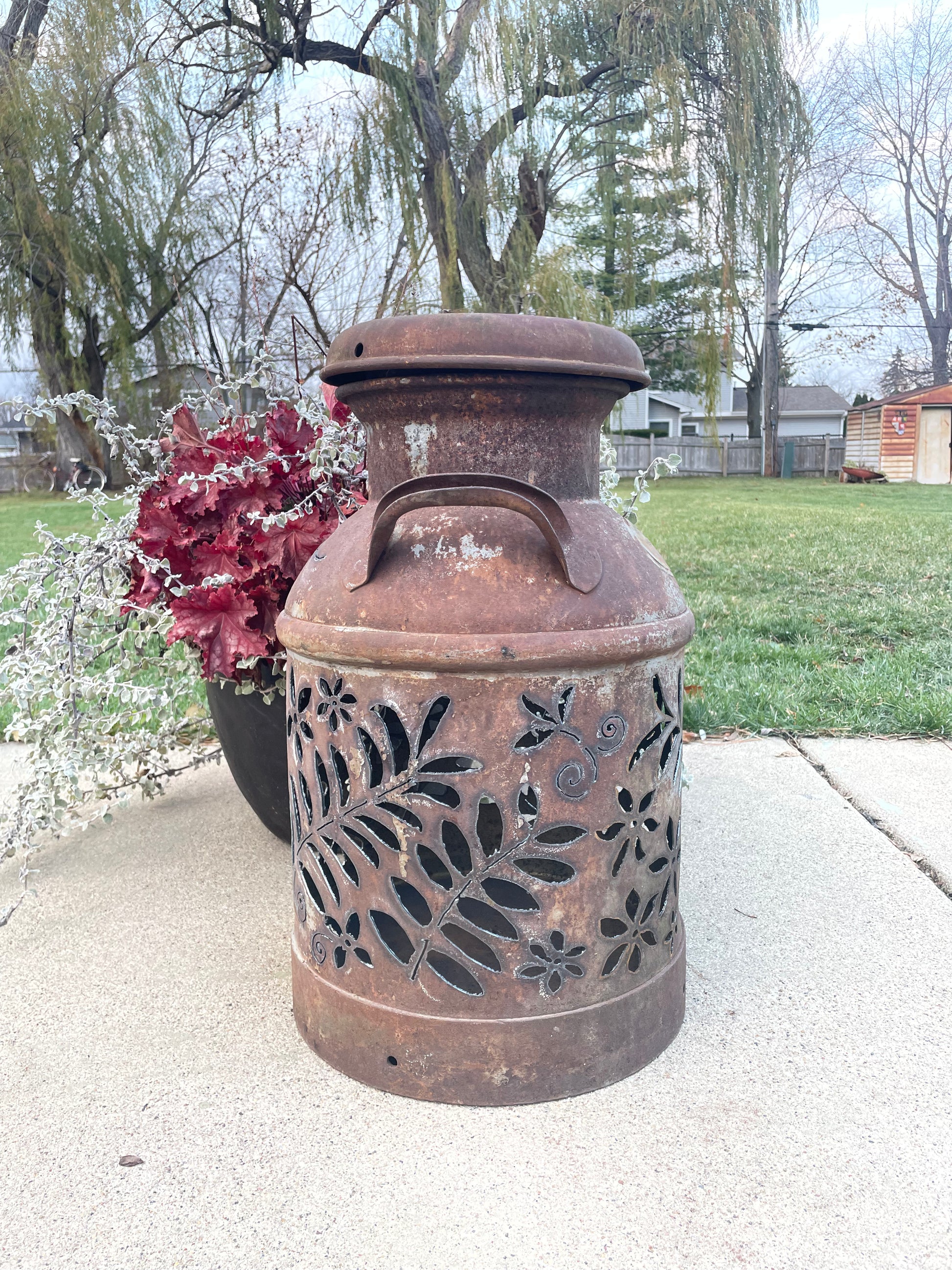 Antique Laverne Kray Milk Can Luminary - Hand Cut