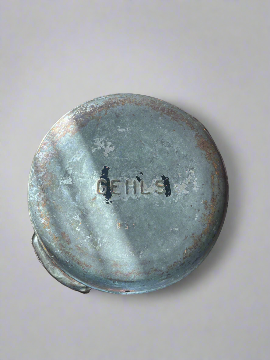 OMCCO 3 ORRVILLE OHIO is embossed on the back of can, and GEHLS is embossed on the lid. There are some black and specks of orange paint on the lid (see picture).