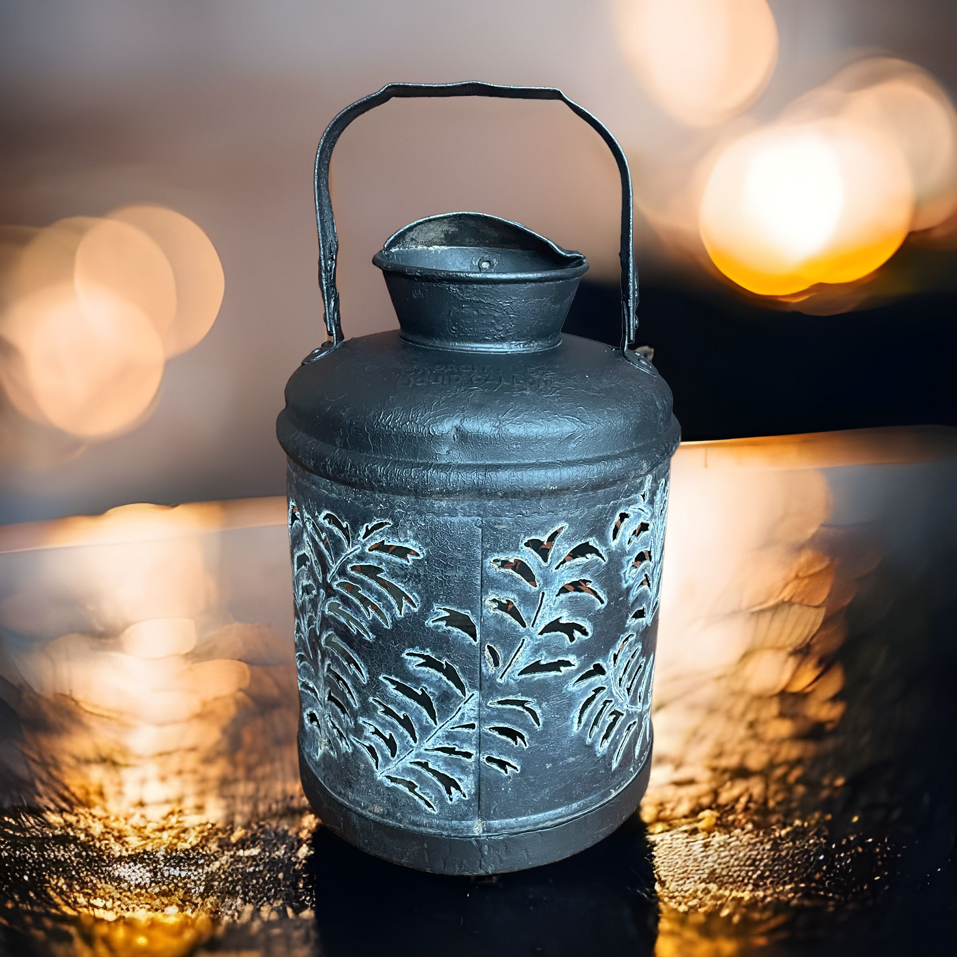 Antique Hand-Cut Oil Can Luminary