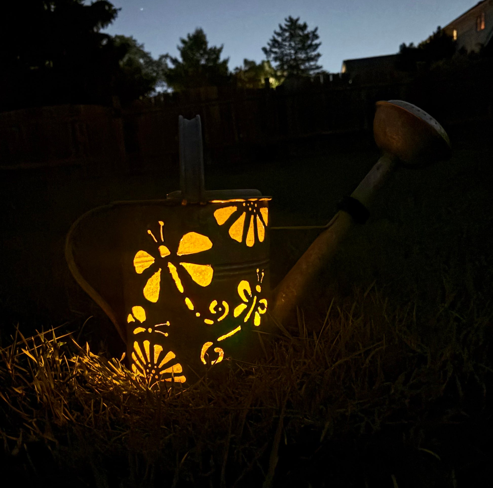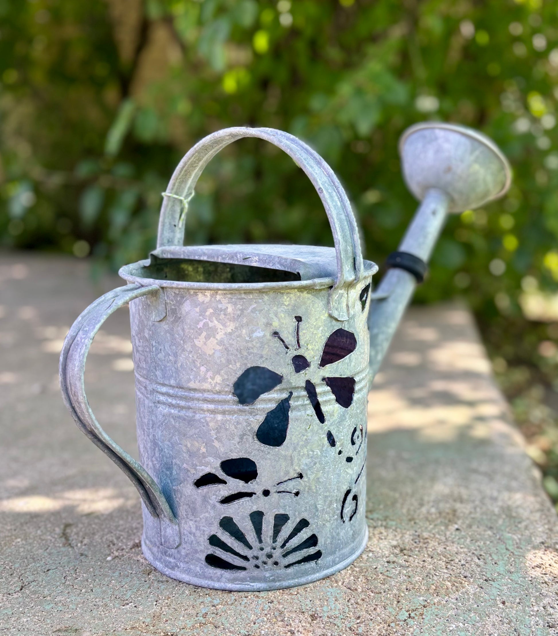 Lots of options styling this watering can. Add a string of battery-operated lights or a candle (not included) to create a luminary, use as a planter, or a piece of garden art.