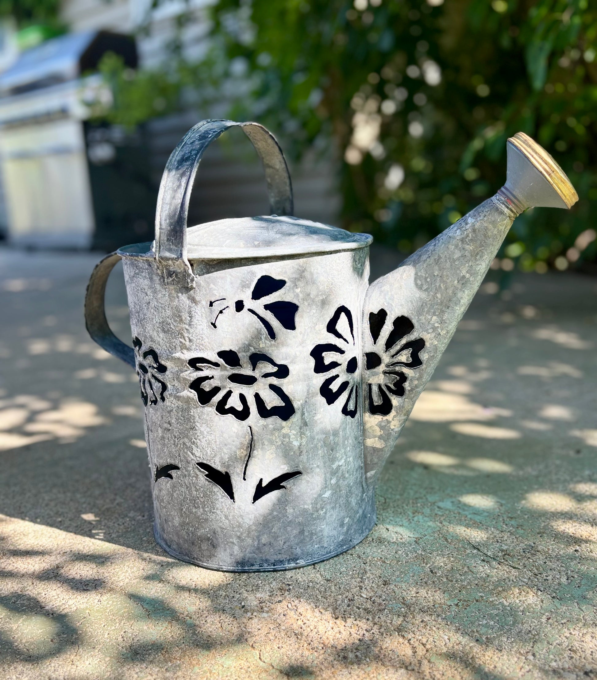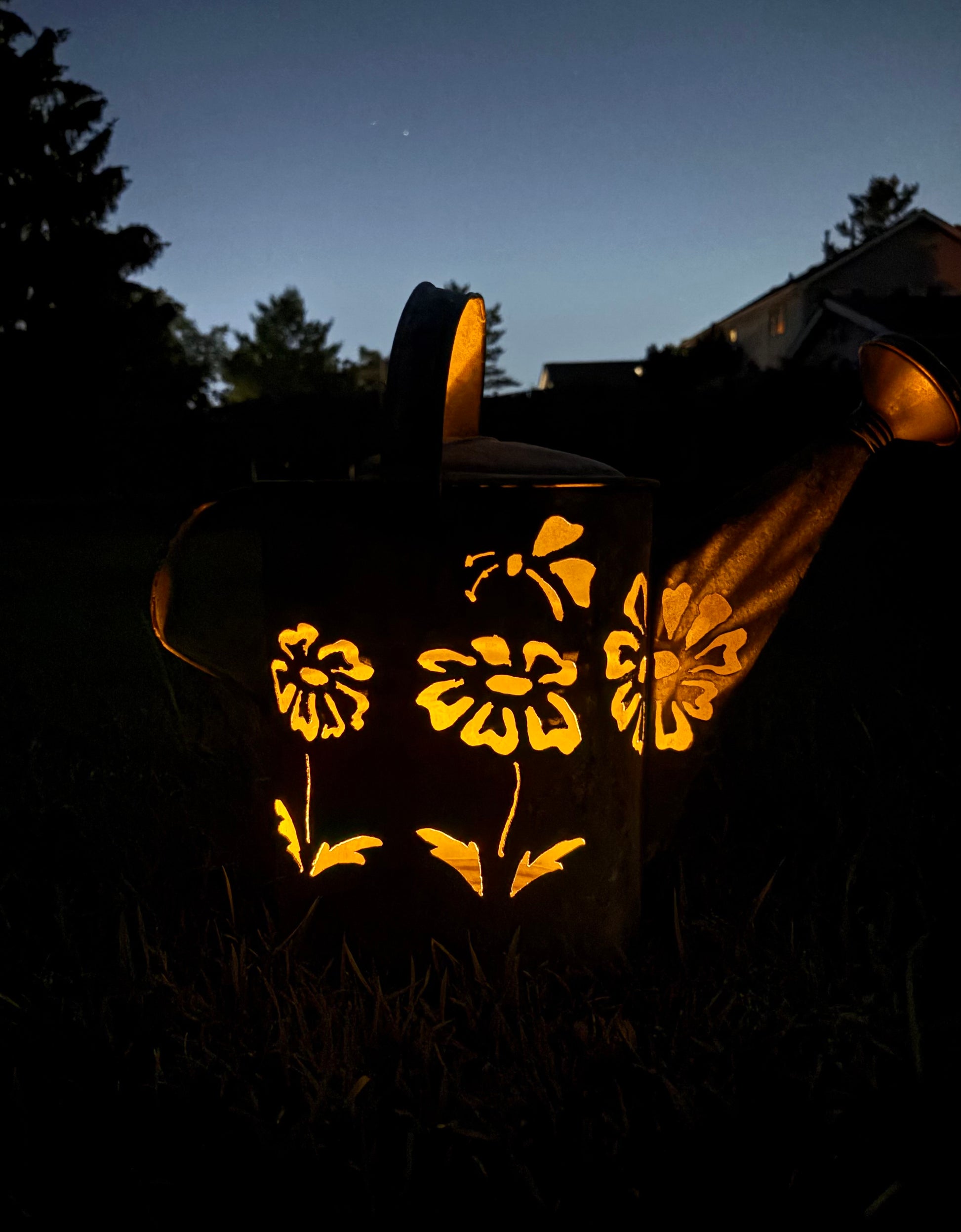 Lots of options styling this watering can. Add a string of battery-operated lights or a candle (not included) to create a luminary, use as a planter, or a piece of garden art.
