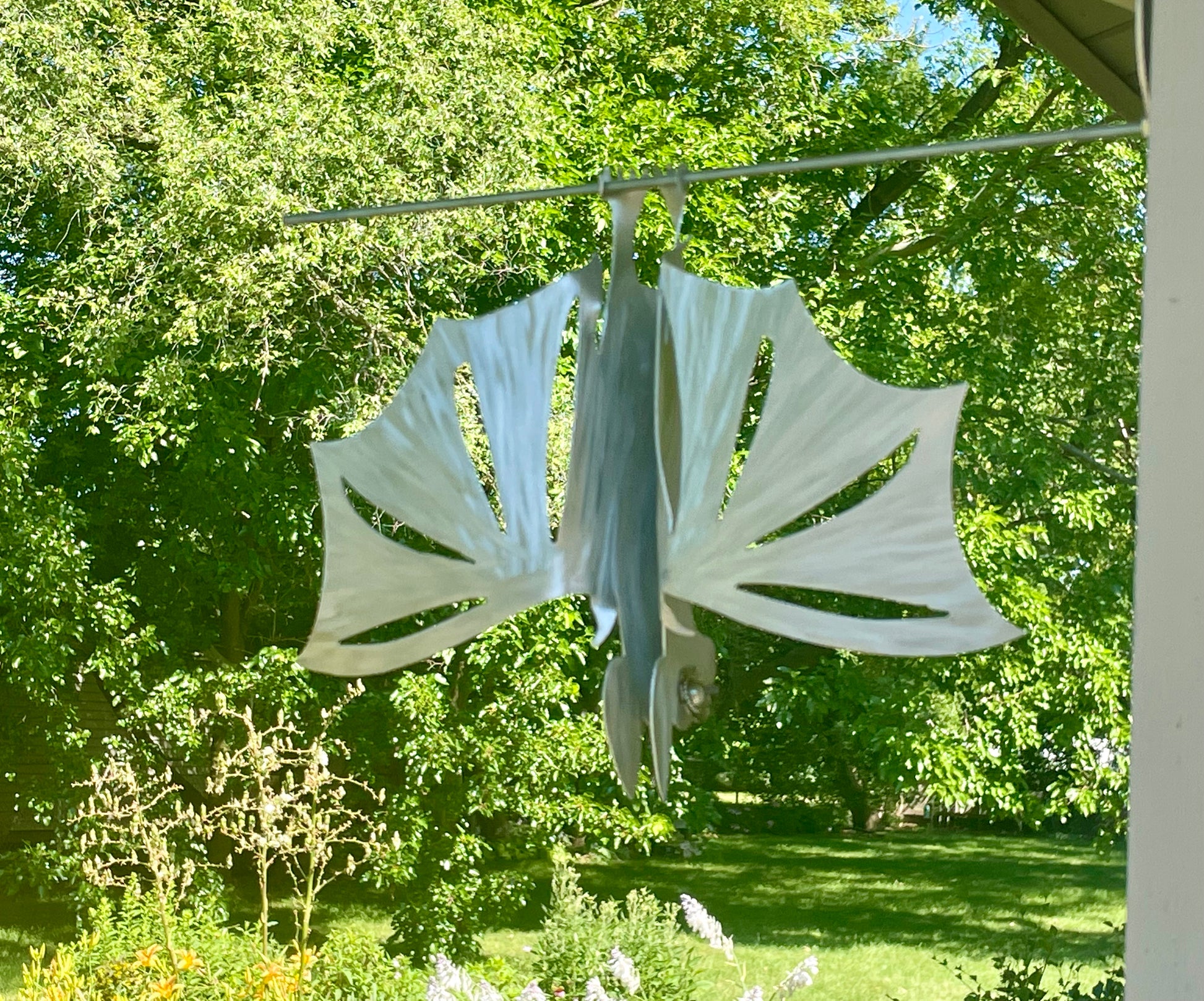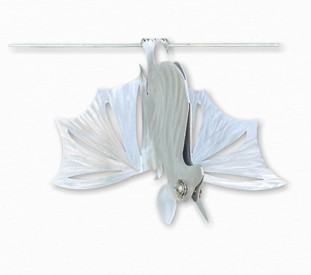 Add a touch of whimsy to your outdoor or indoor space with this stunning metal bat. She’ll completely change your mind on what a bat should look like.