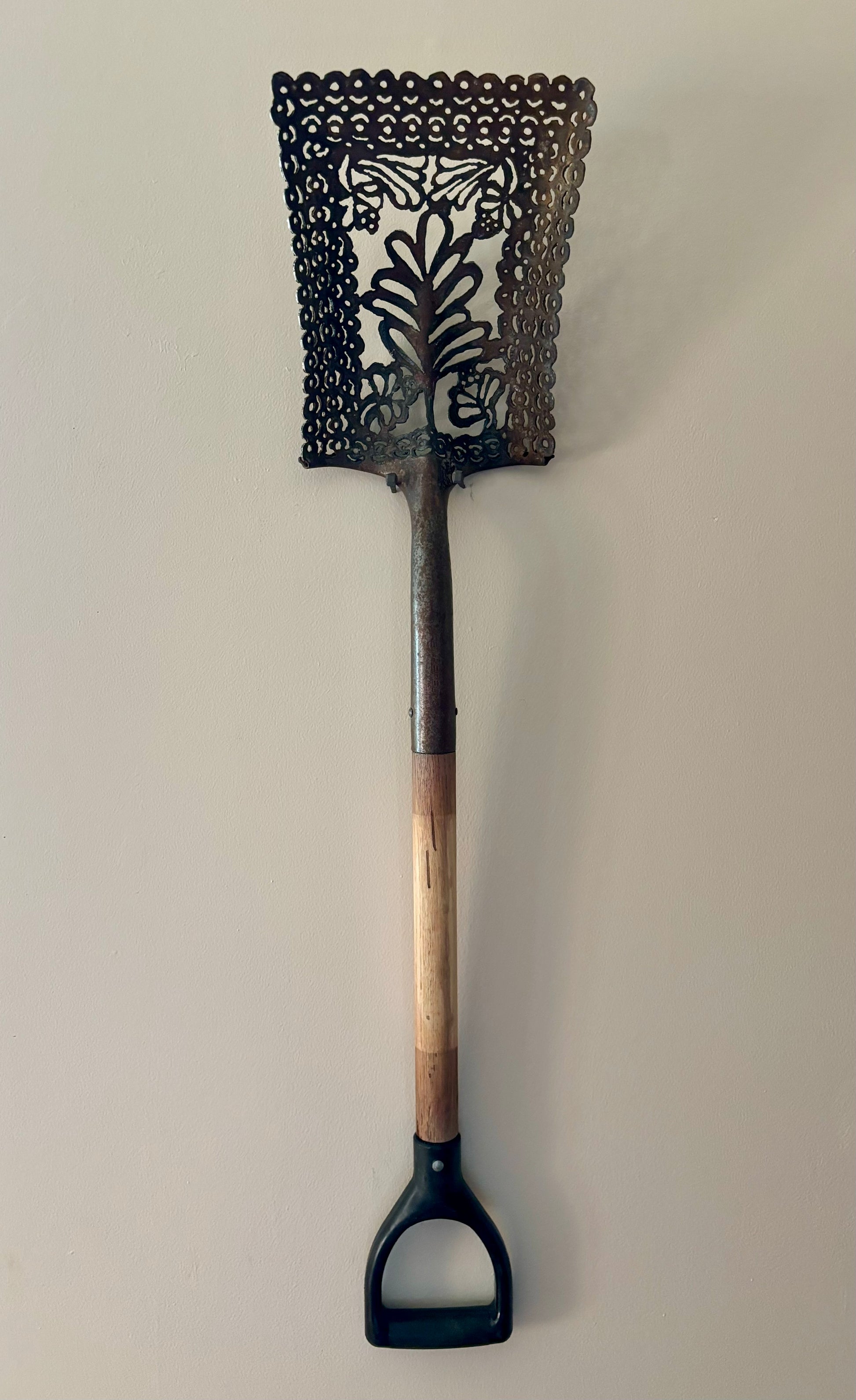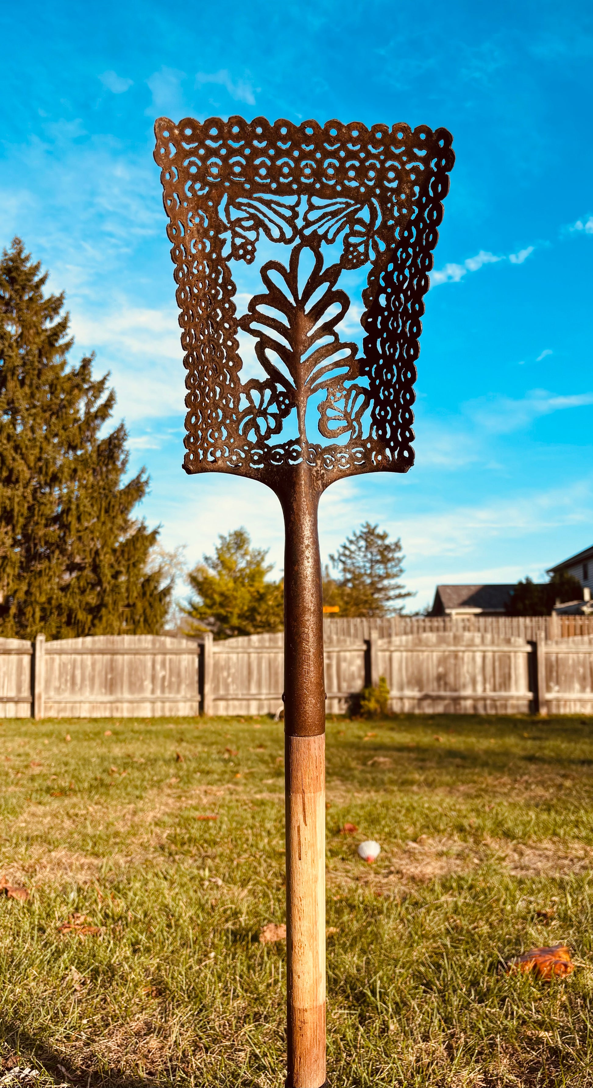 This beautiful shovel is hand cut and intricately designed to bring a touch of whimsy to your indoor or outdoor space.