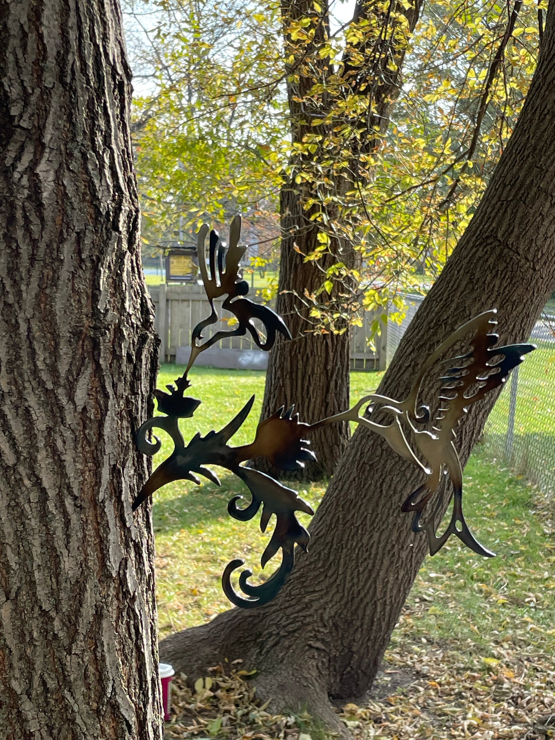 The hummingbird is a favorite and the first metal bird design Debbie created. You will find two dainty hummingbirds feeding on flower nectar. This is a gorgeous piece that will add a unique flair to your yard.