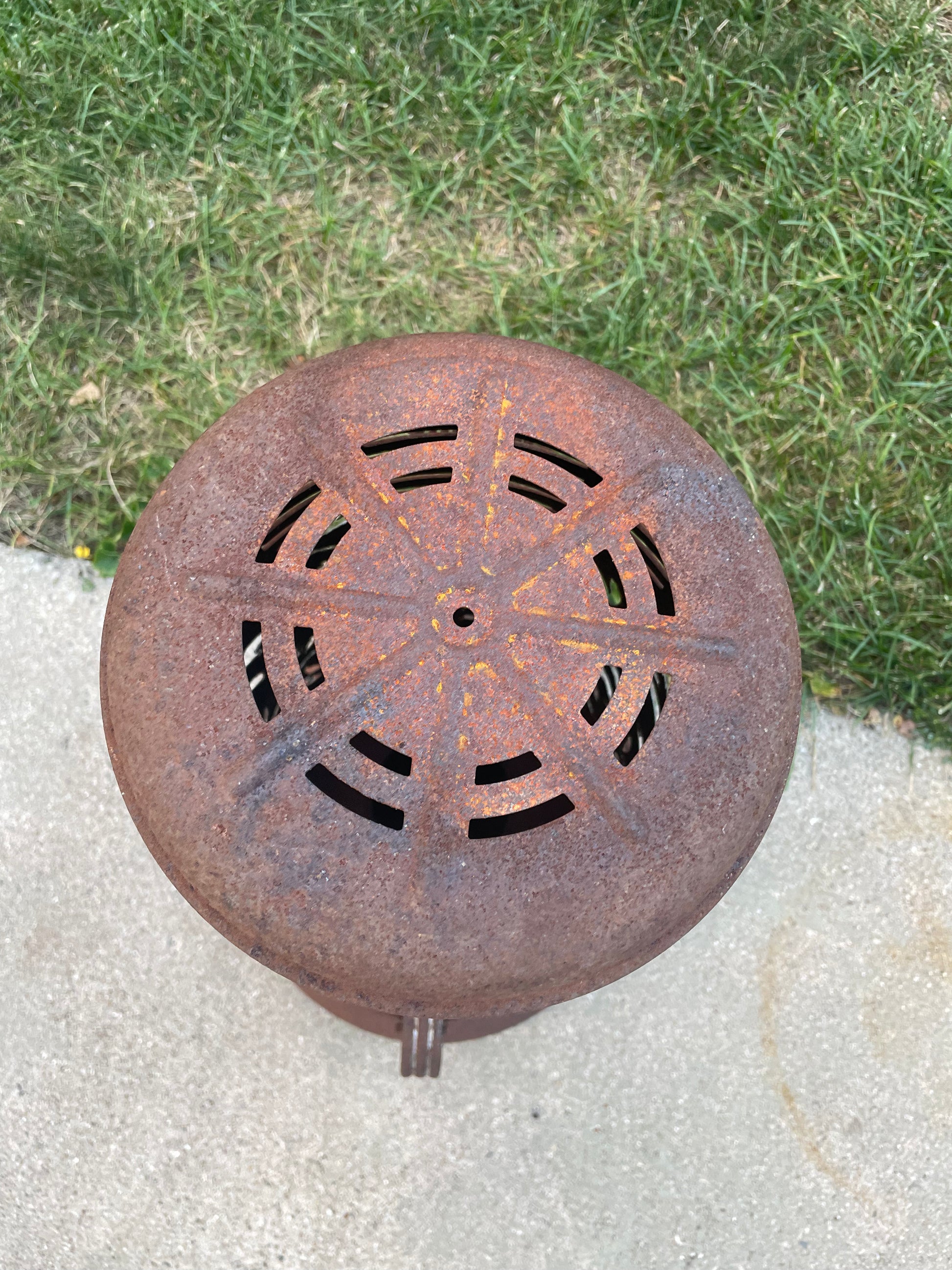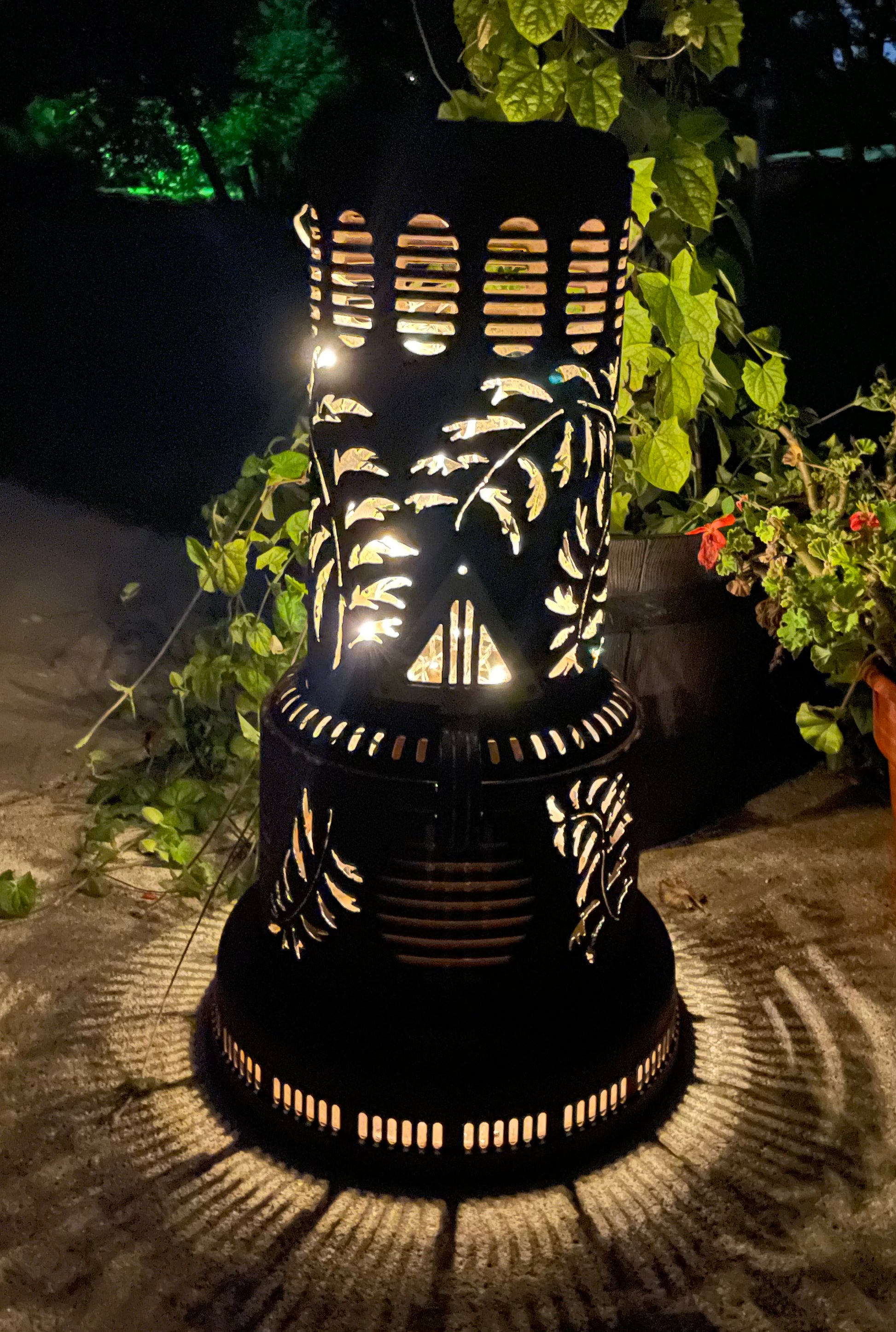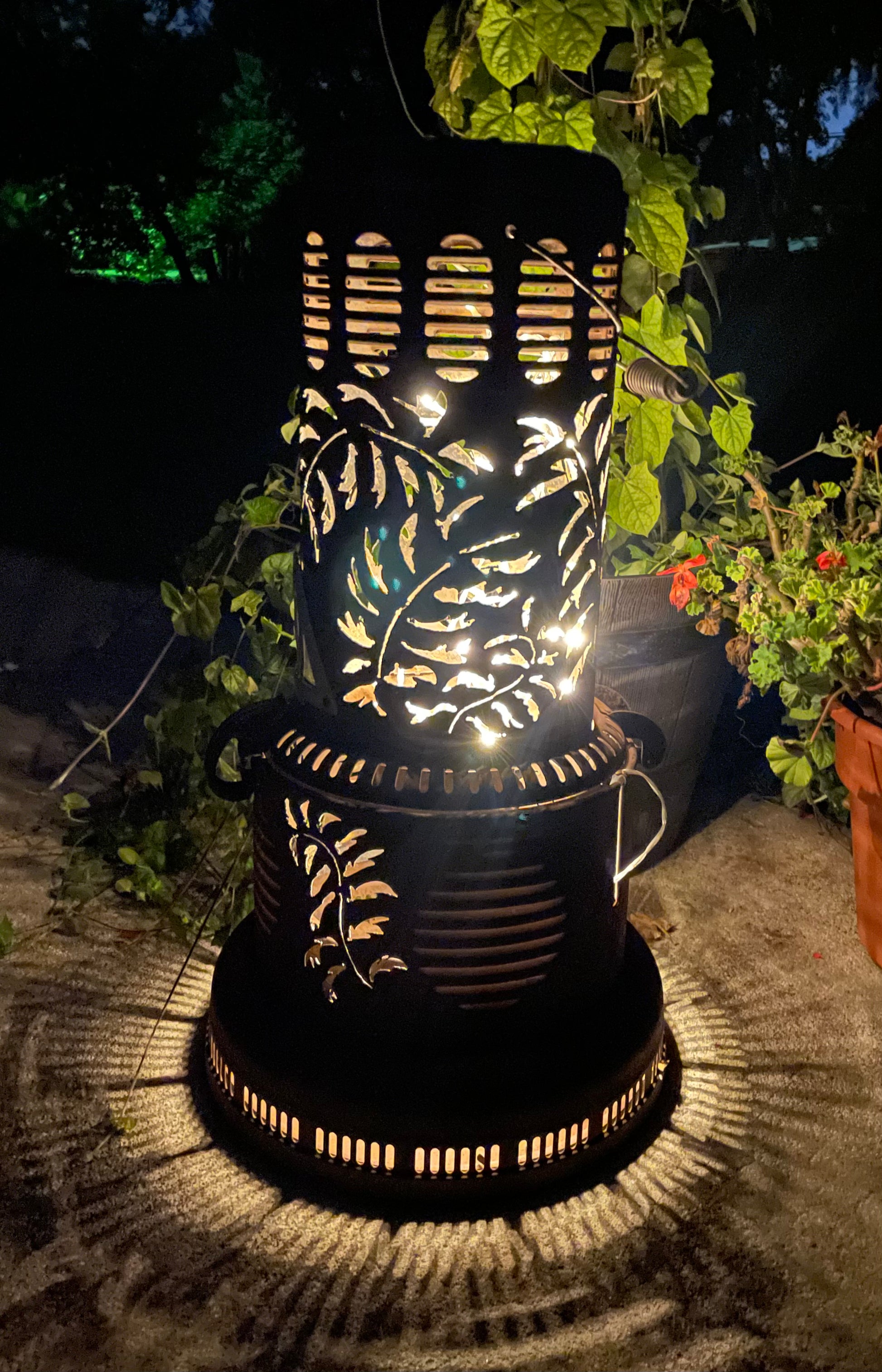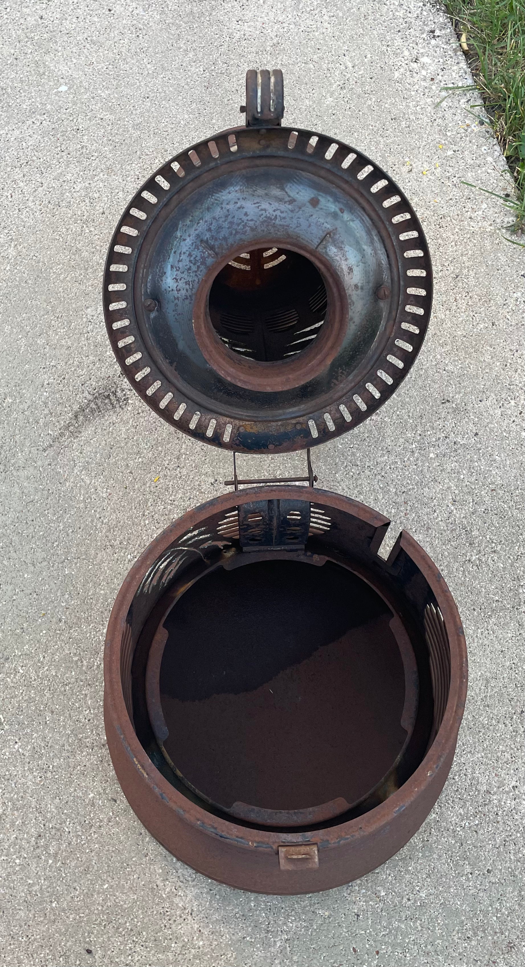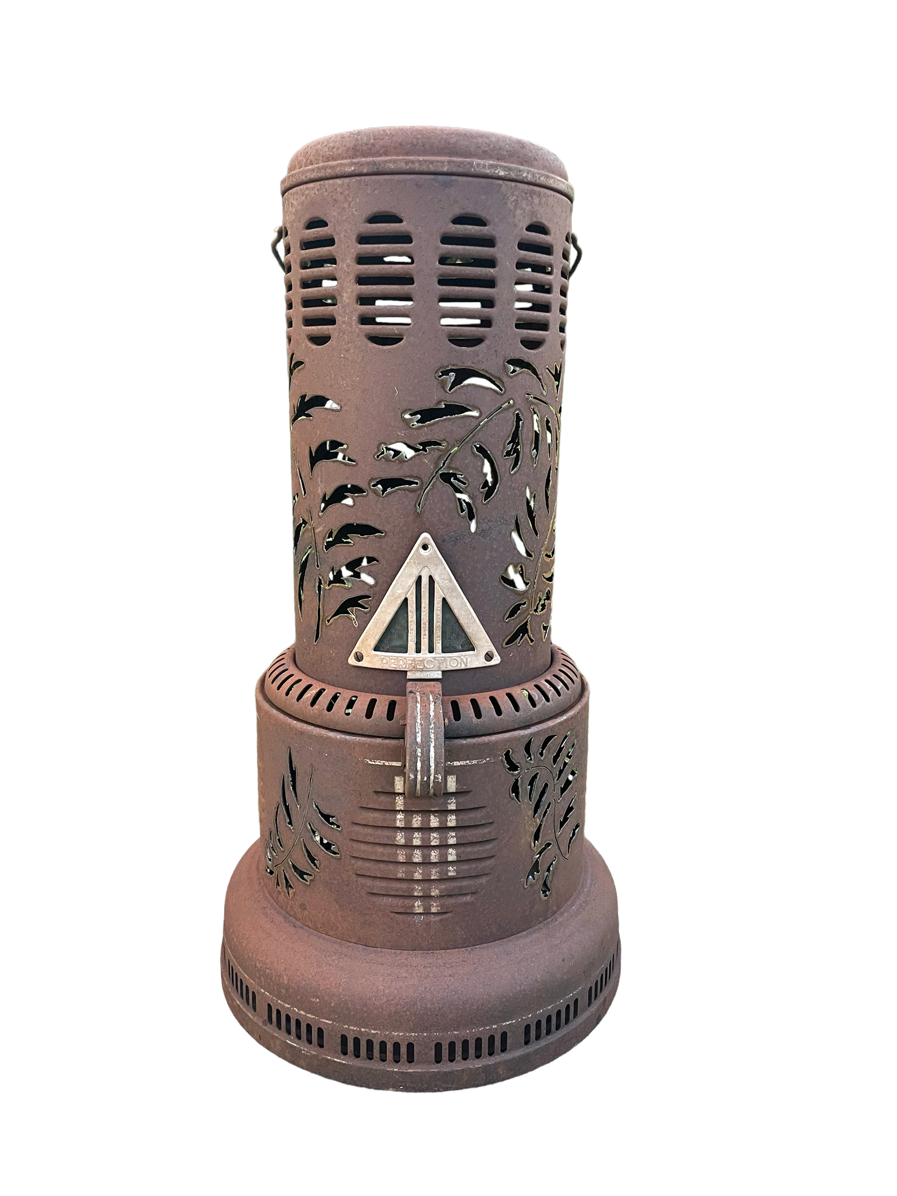 This beauty is a vintage Perfection Oil Heater/Parlor Stove, hand cut with an intricate design, and will bring an element of old-fashioned class to your space. The heater easily opens up so that a string of battery-operated lights (not included) can be added to create a luminary.