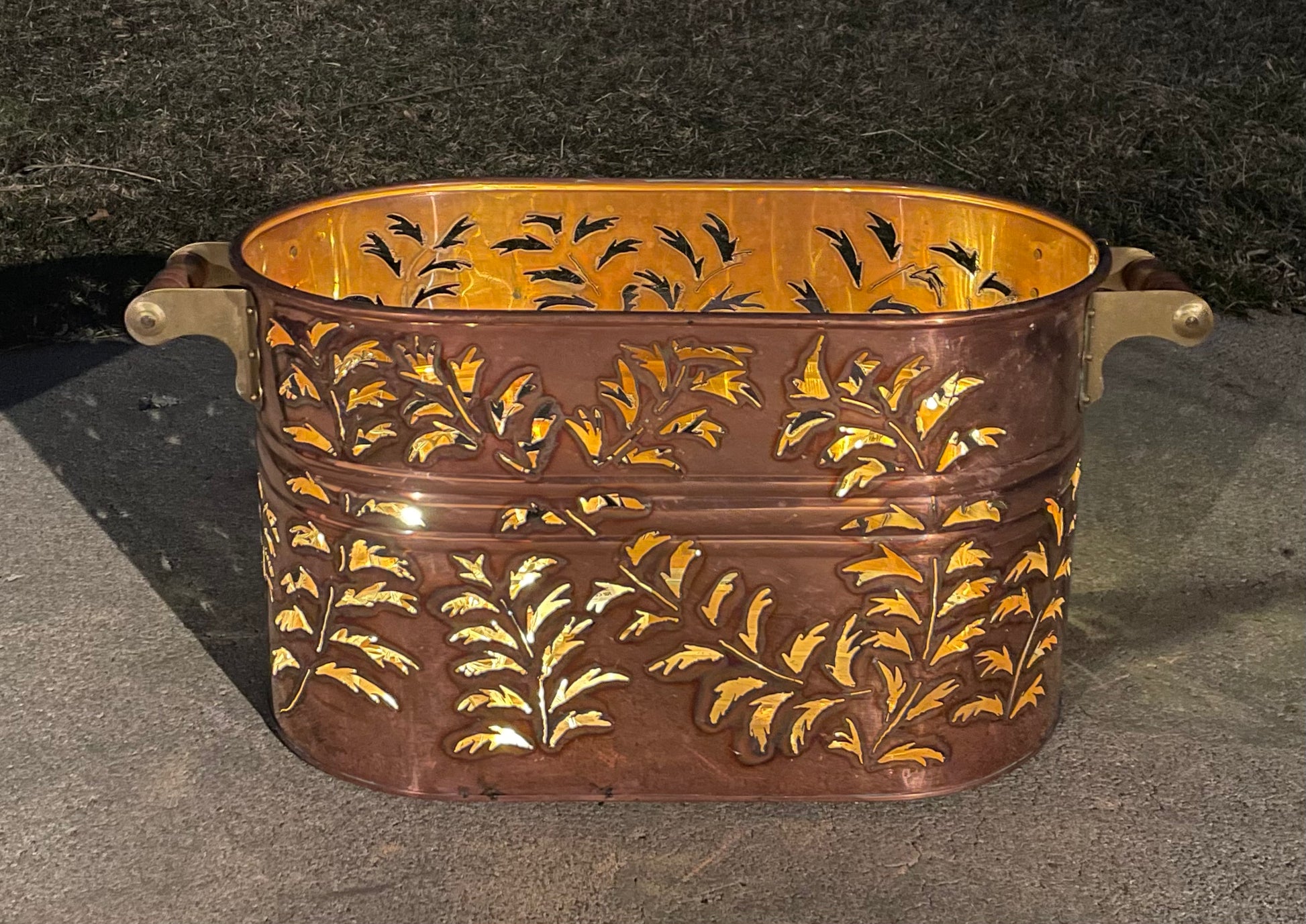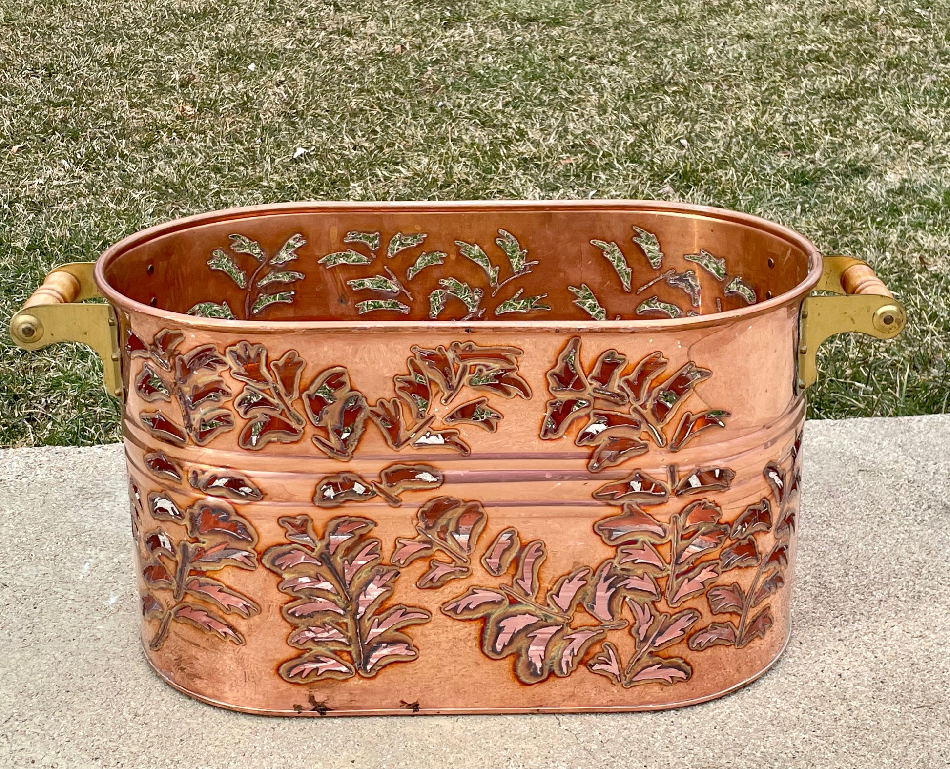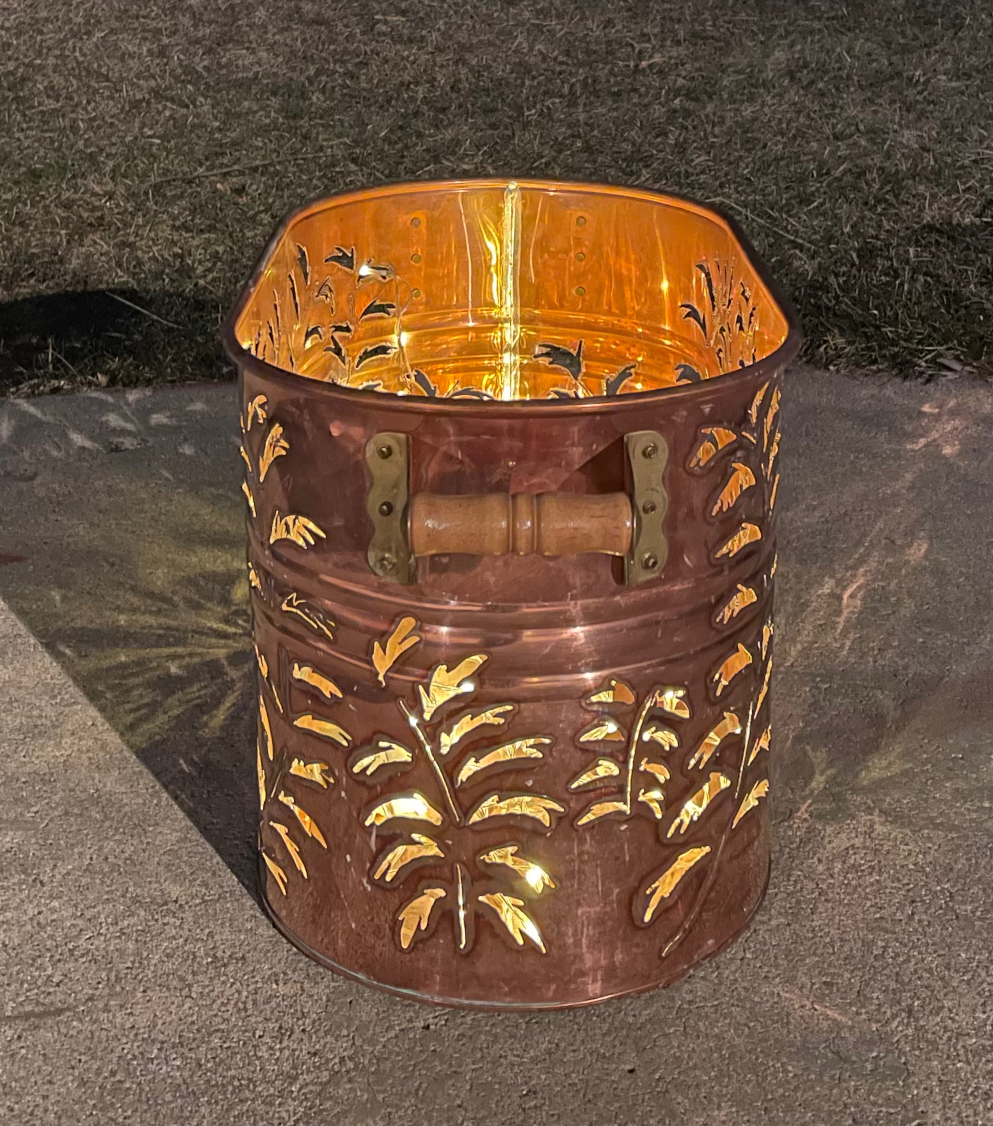 Vintage 15-gallon COPPER boiler. Hand cut with a plasma torch. Add a string of battery-operated lights (not included) to create a luminary.