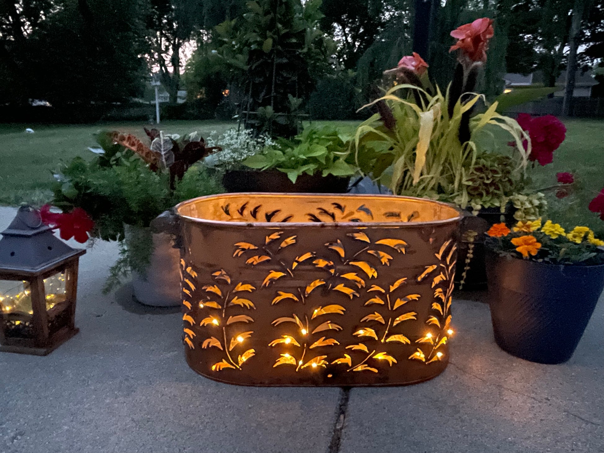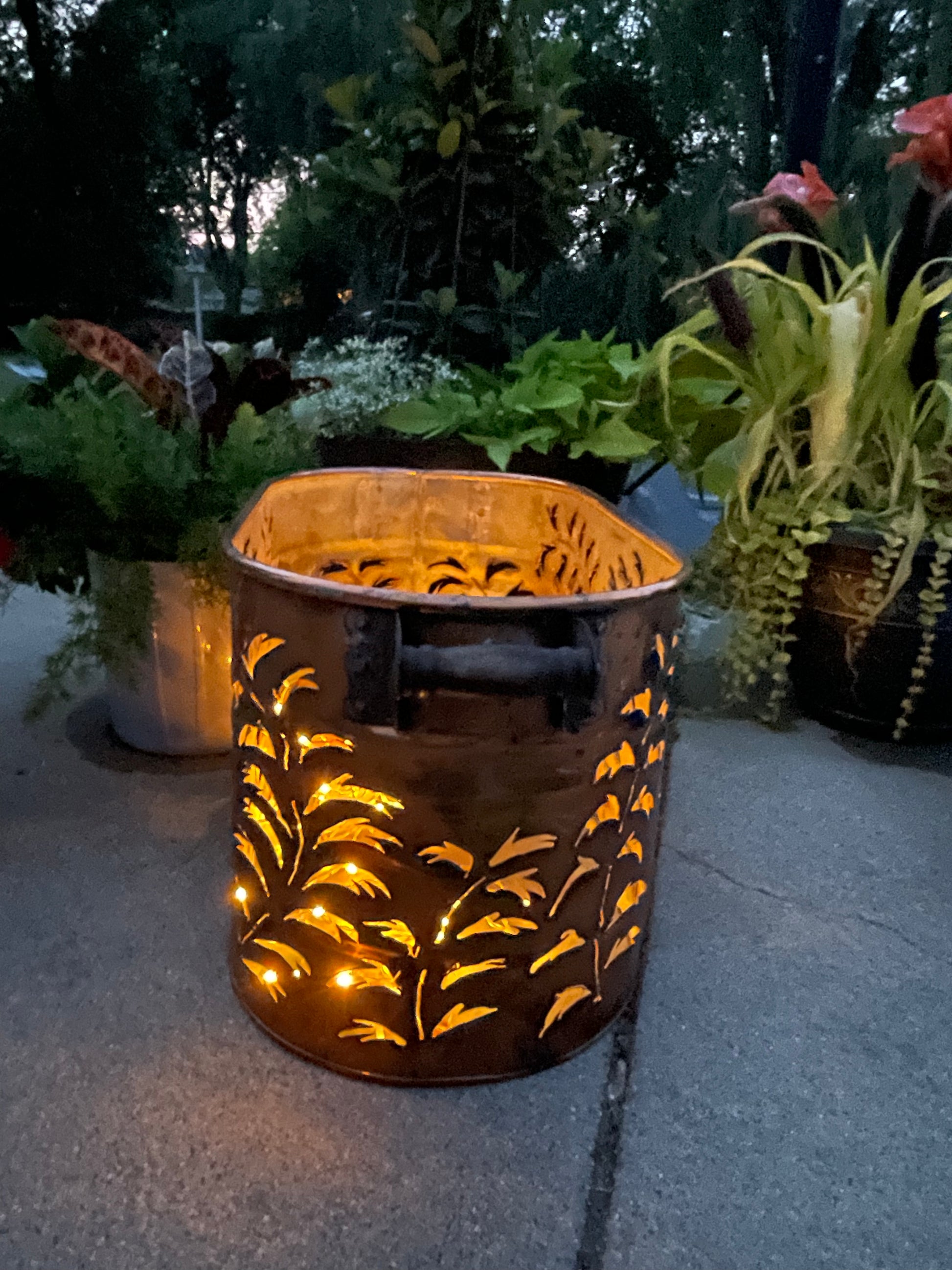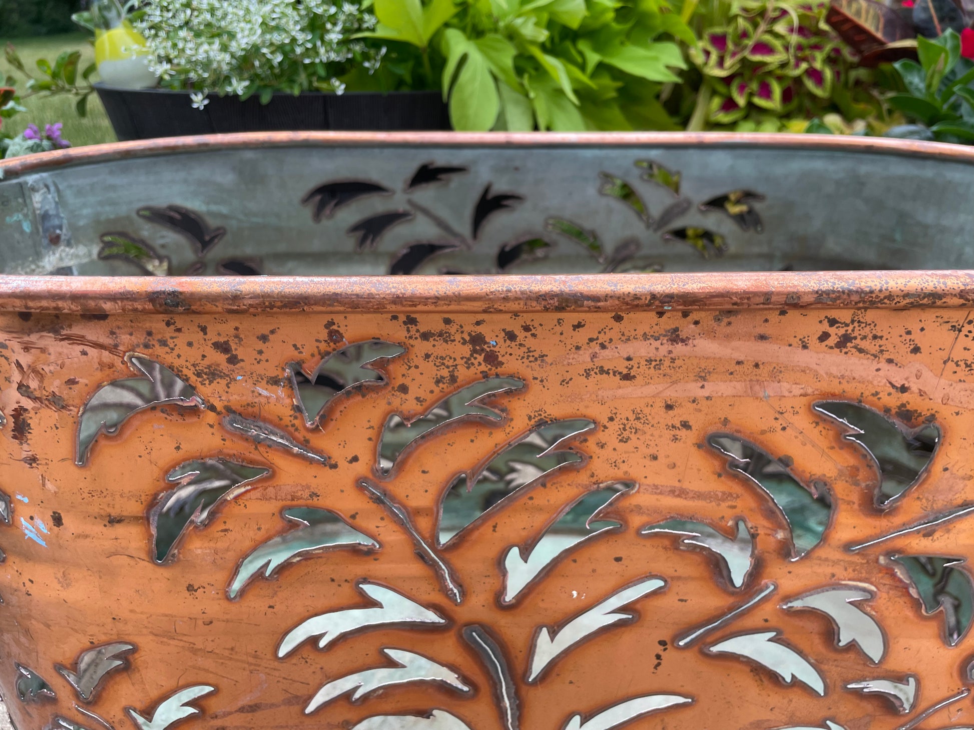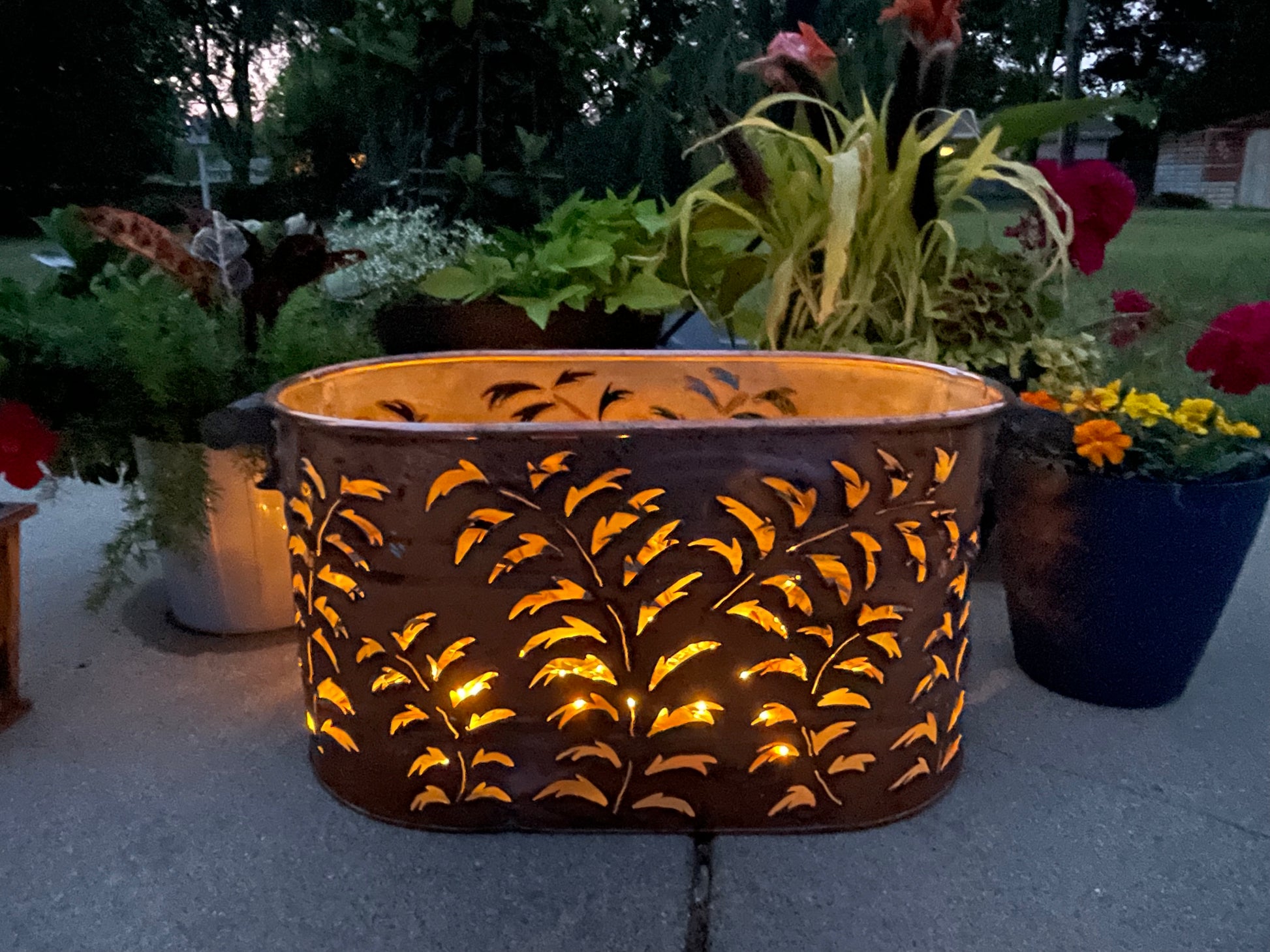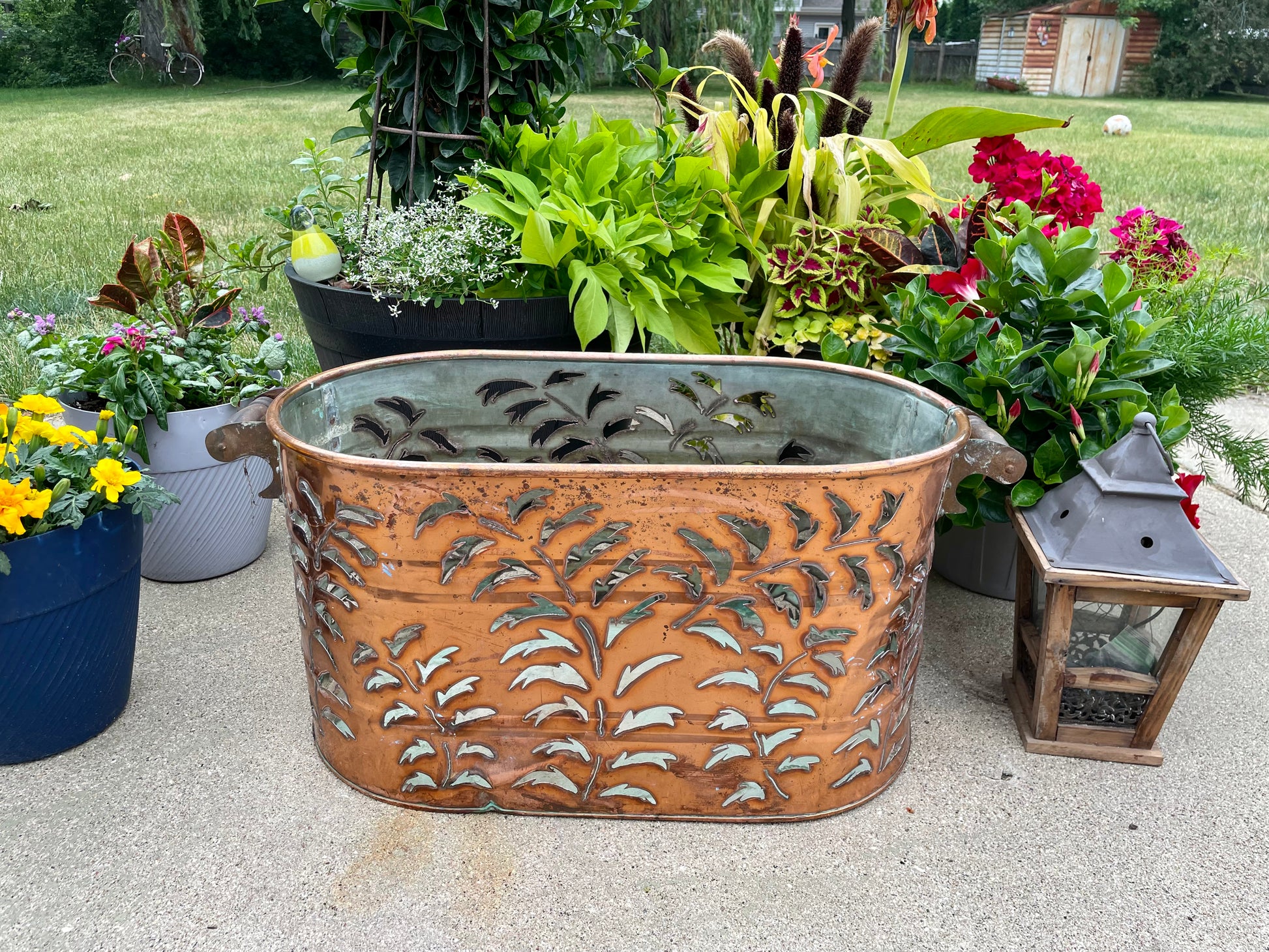 Vintage 15-gallon COPPER boiler. Hand cut with a plasma torch. Add a string of battery-operated lights (not included) to create a luminary or add flowers (not included).
