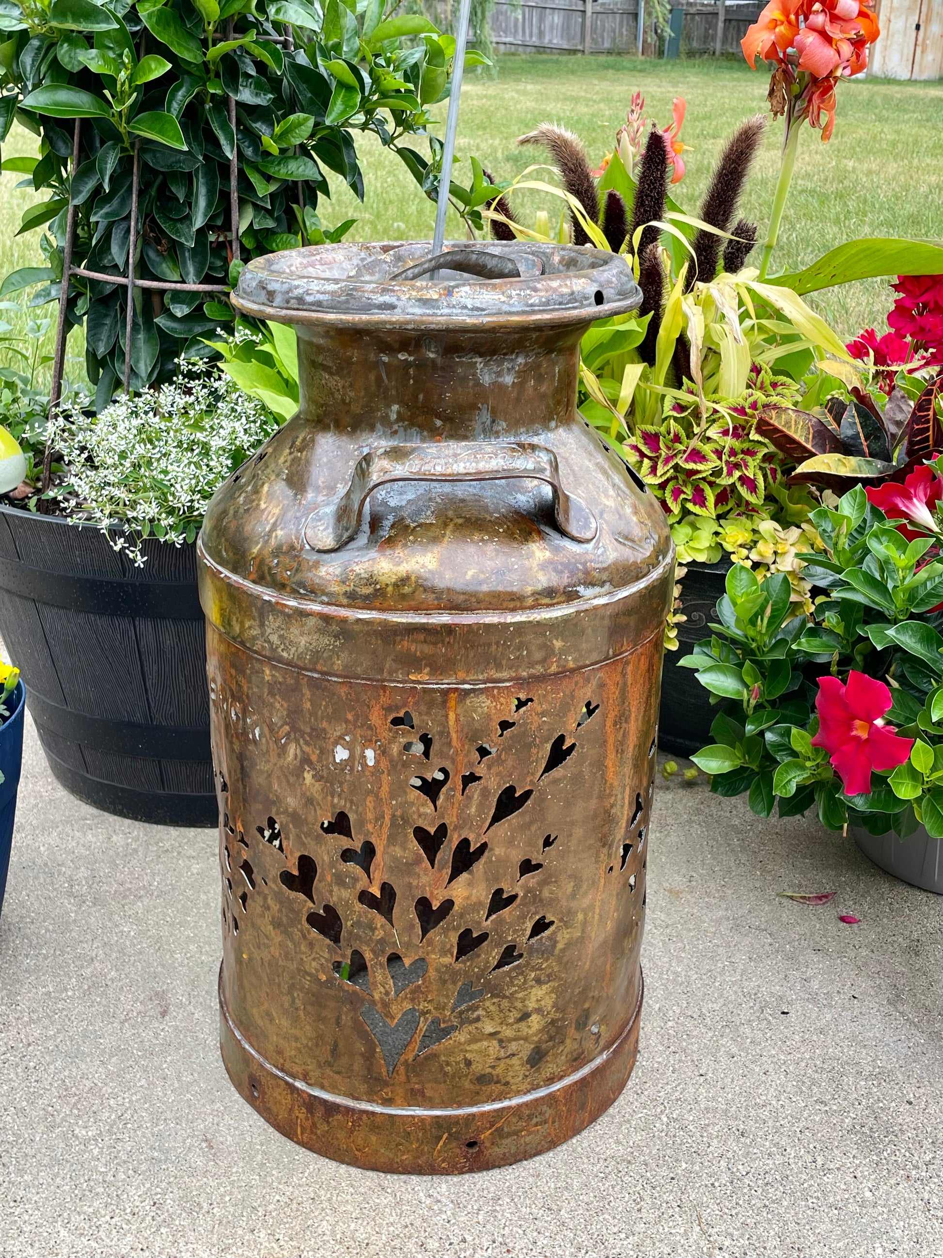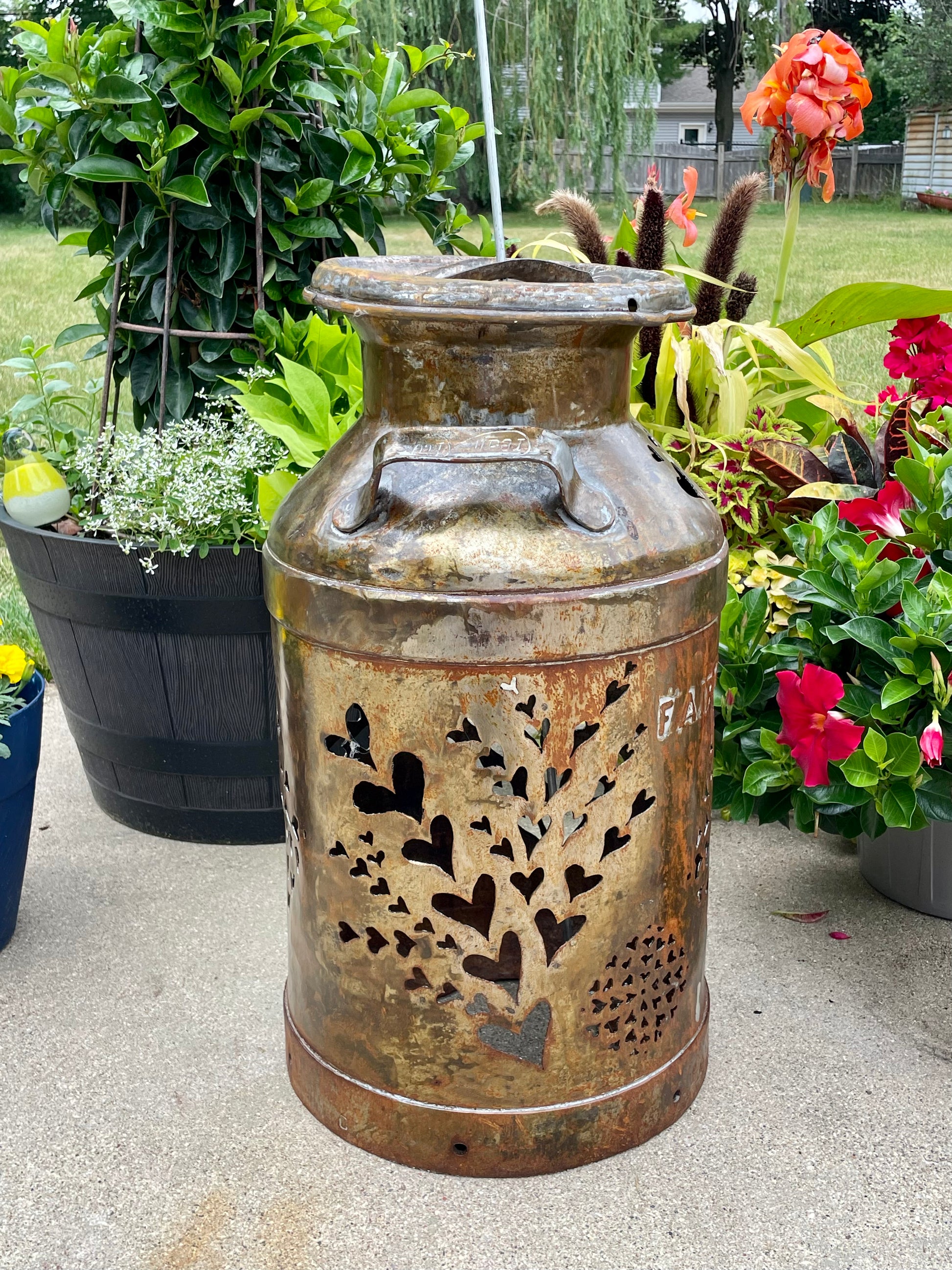 #thesteelworkersdaughter #antique #milkcan #metalart #luminary #heartart