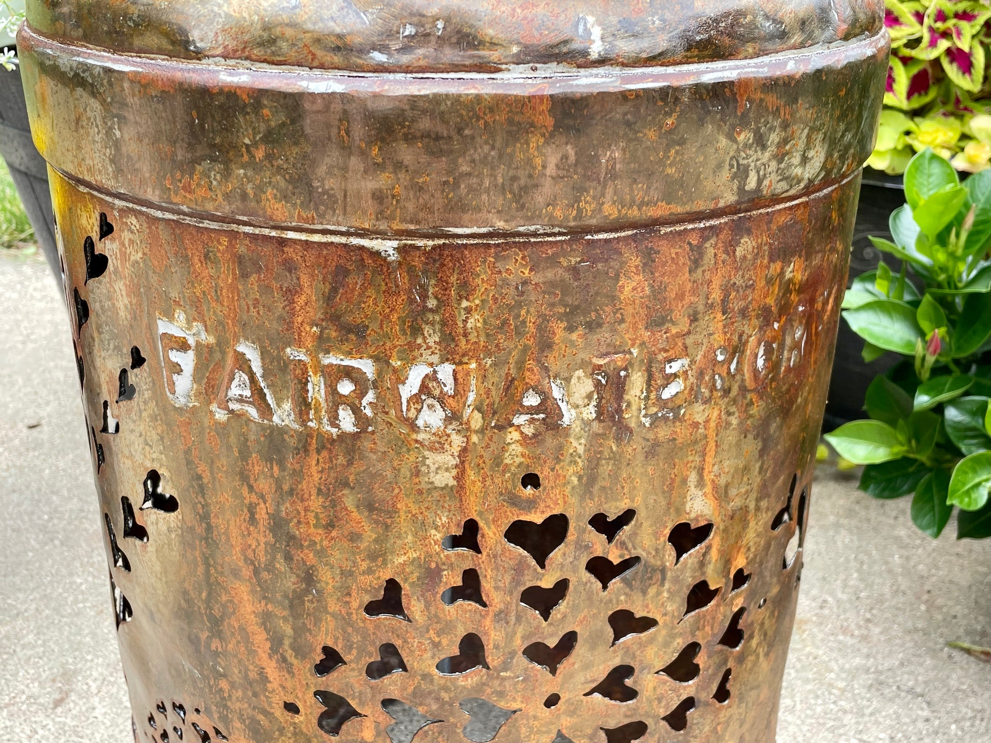 Hearts will flutter when your friends see this antique milk can intricately hand cut with a number of different heart designs. The top of the can comes off and there is a hole in the bottom so you can add a battery-operated string of lights (not included) to create a luminary.