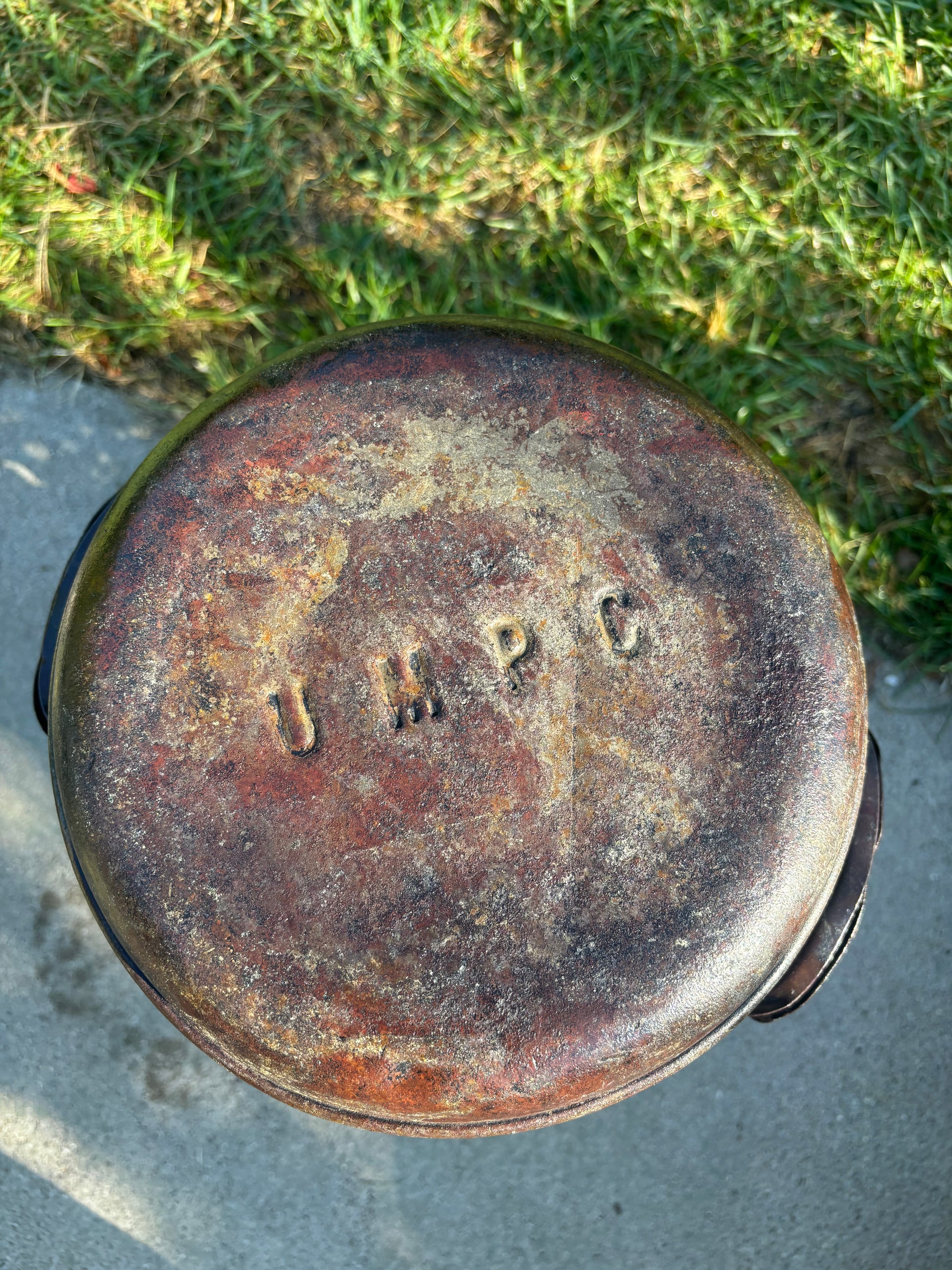 Measuring approximately 22" tall x 13" wide and weighing 27.5 lbs. The original metal is in great shape with some surface rust and scratches. A clear coat has been added for protection and gives it a glossy finish. The can will continue to oxidize and change color as it’s exposed to the elements.