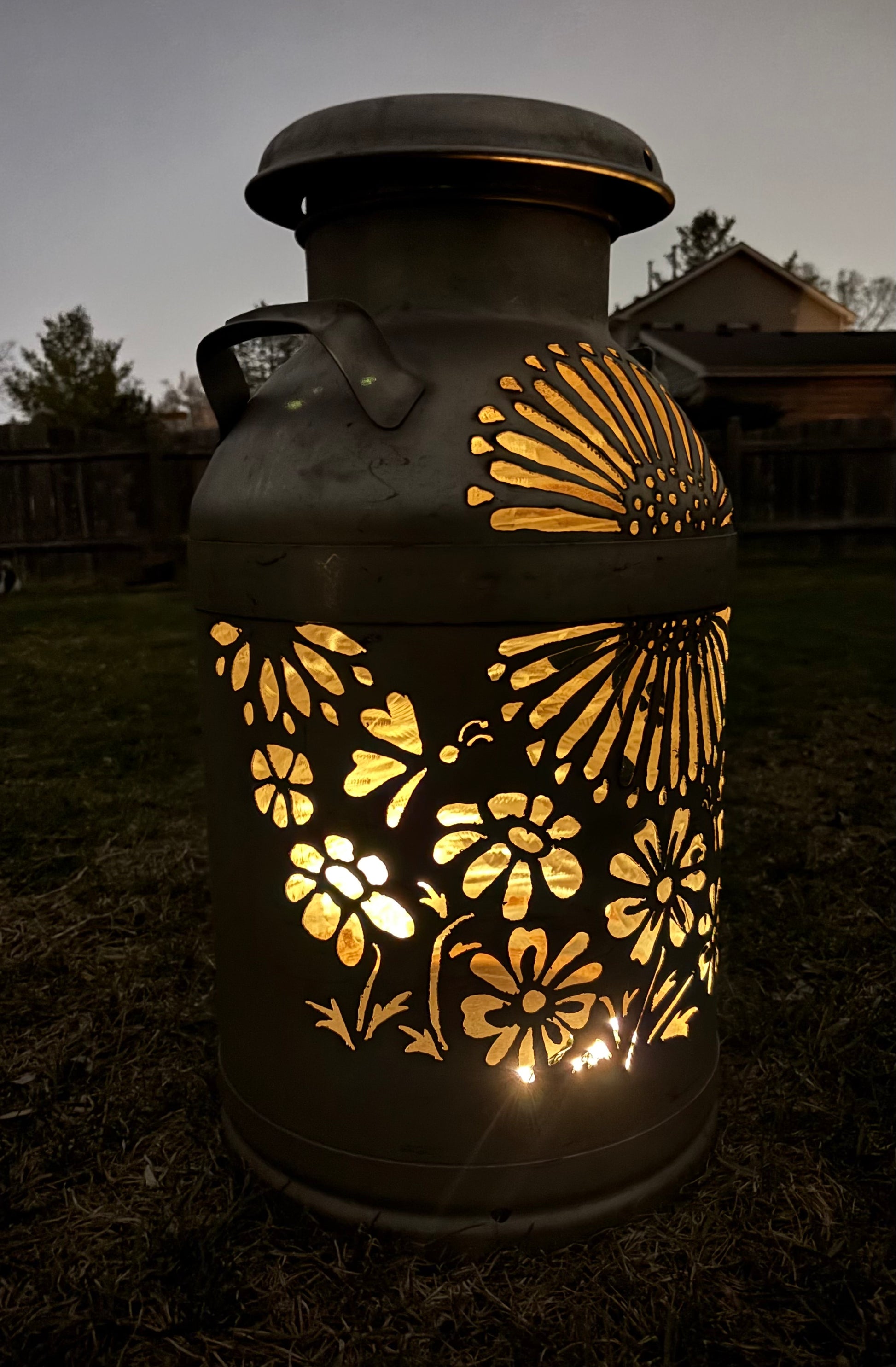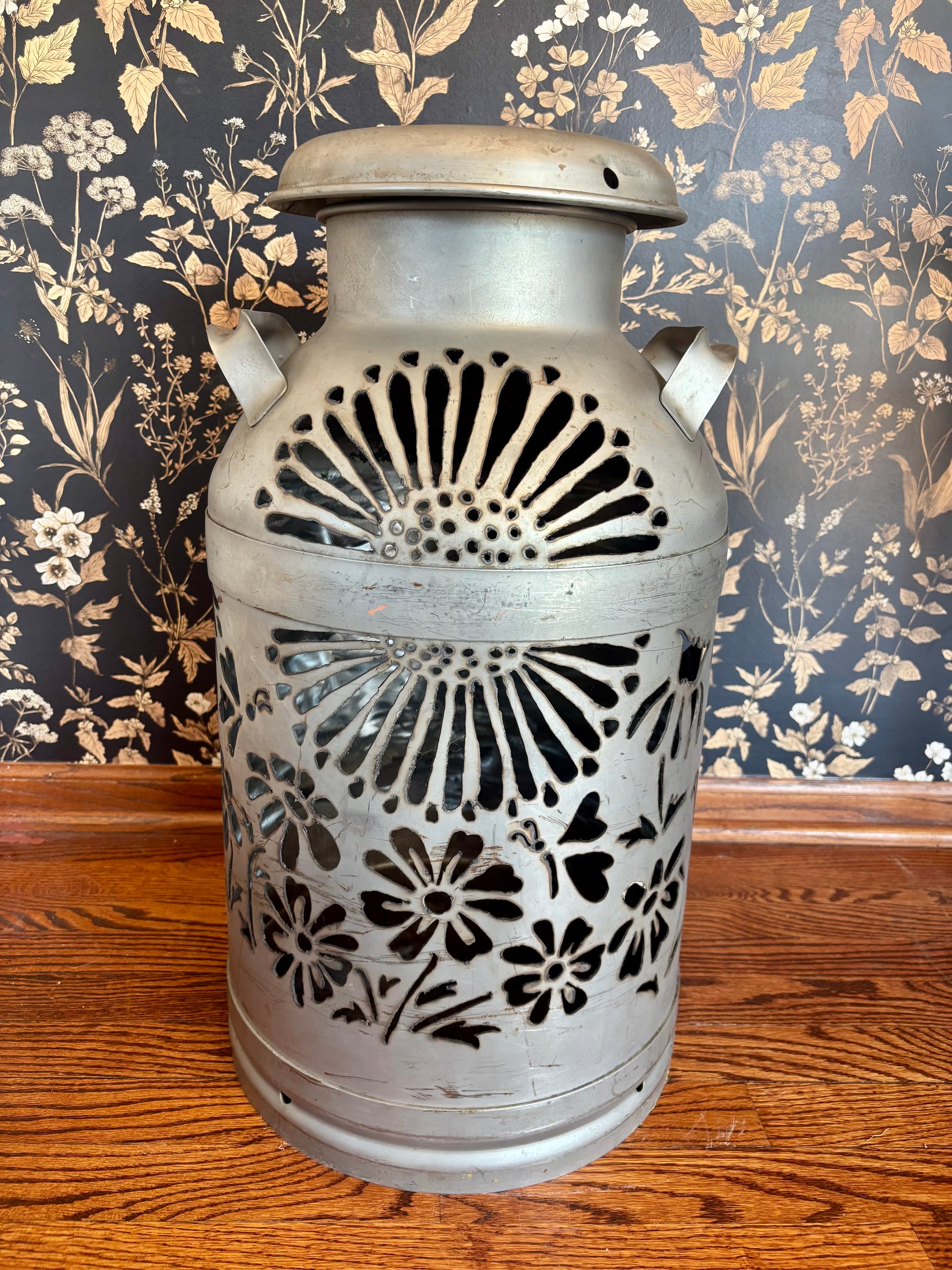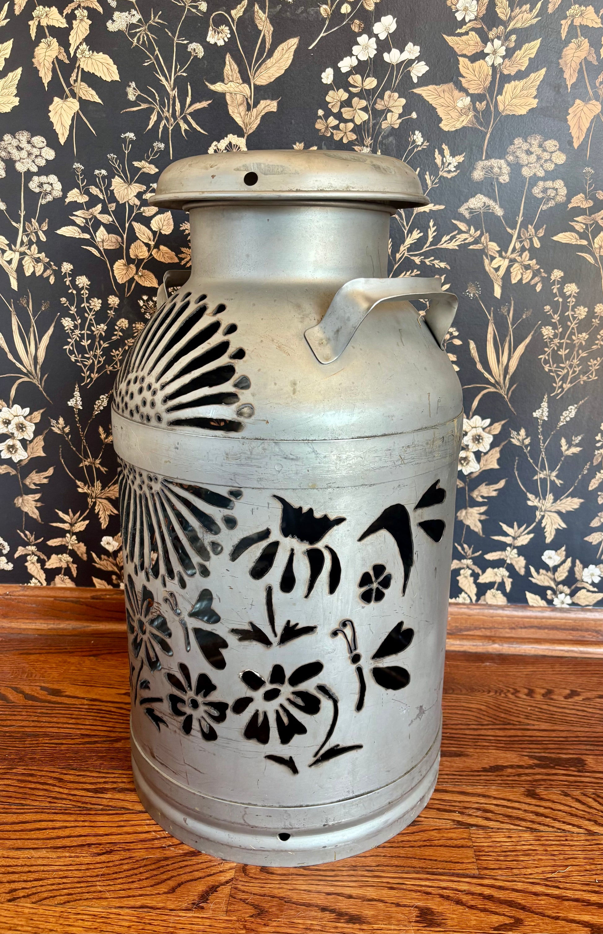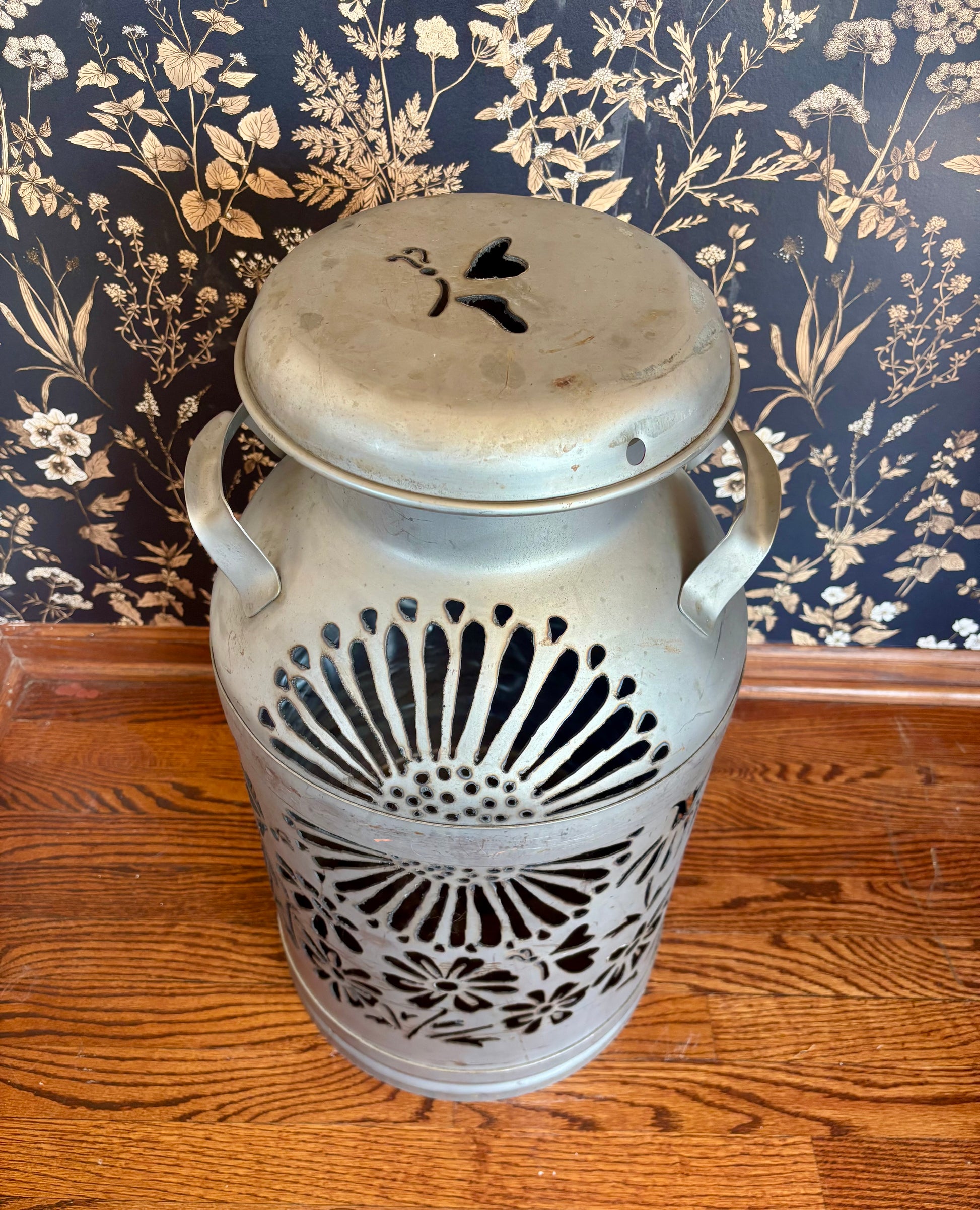 Vintage Milk Can Luminary - Flower, Butterfly and Hummingbird Design