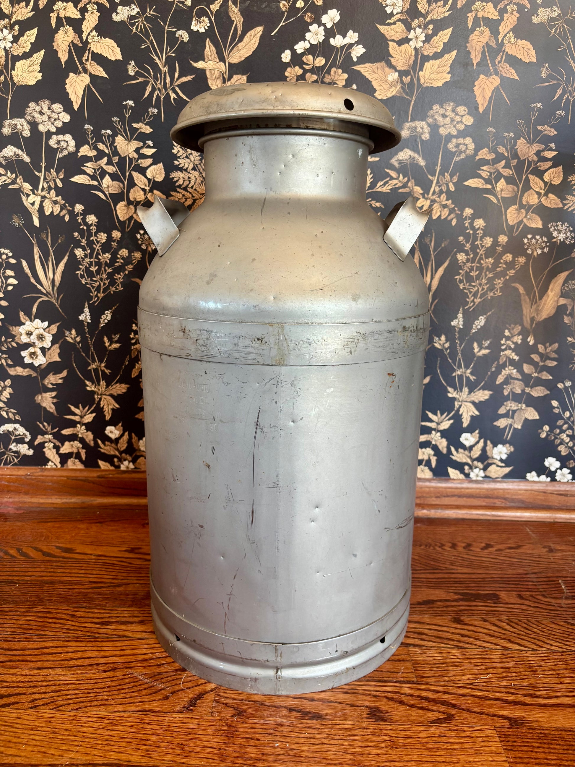 Measuring approximately 23.5" tall x 13" wide and weighing approximately 18 lbs. This can has never been painted, and the original metal is in great shape with some surface rust and scratches. It will continue to oxidize and change color as it’s exposed to the elements.