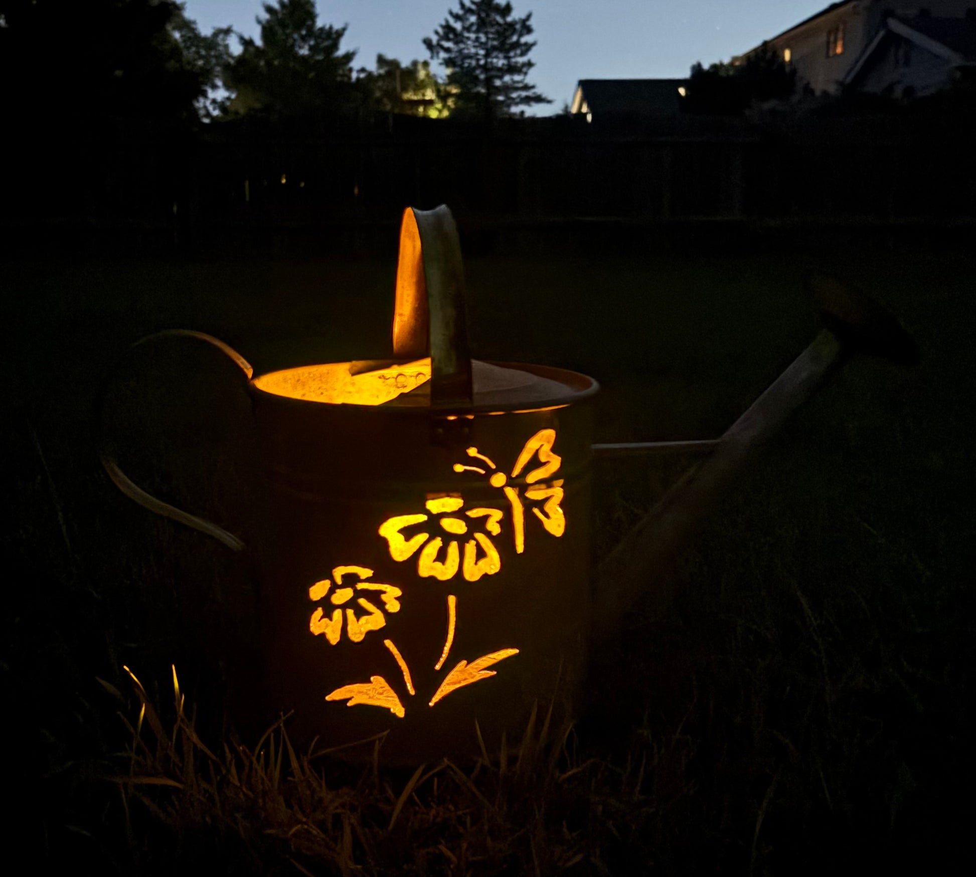Lots of options styling this watering can. Add a string of battery-operated lights or a candle (not included) to create a luminary, use as a planter, or a piece of garden art.